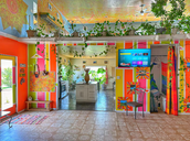 Step into a one-of-a-kind experience in this eclectic loft, set on the actual stage of a historic theater. This unique space blends vintage charm with artistic flair, offering a cozy retreat in a truly unforgettable setting. Enjoy the rich character of the old theater while relaxing in a thoughtfully designed apartment. Perfect for creatives, history lovers, and anyone seeking a stay that’s anything but ordinary!